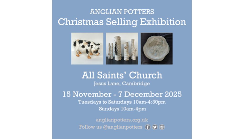 CDS Member Janice Anderson is one of the artists exhibiting at the Anglian Potters’ Christmas Selling Exhibition. The exhibition runs from 15 November – 7 December at All Saints’ Church, Jesus Lane, Cambridge. The exhibition is open Tuesday – Saturday (10am-4:30pm), & Sunday (10am-4pm). For…