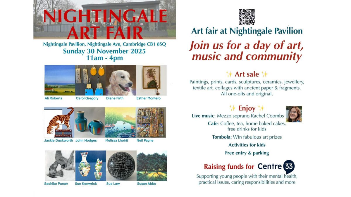 The event will take place in the Nightingale Pavilion on Nightingale Avenue, Cambridge CB1 8SQ and will support Centre 33.