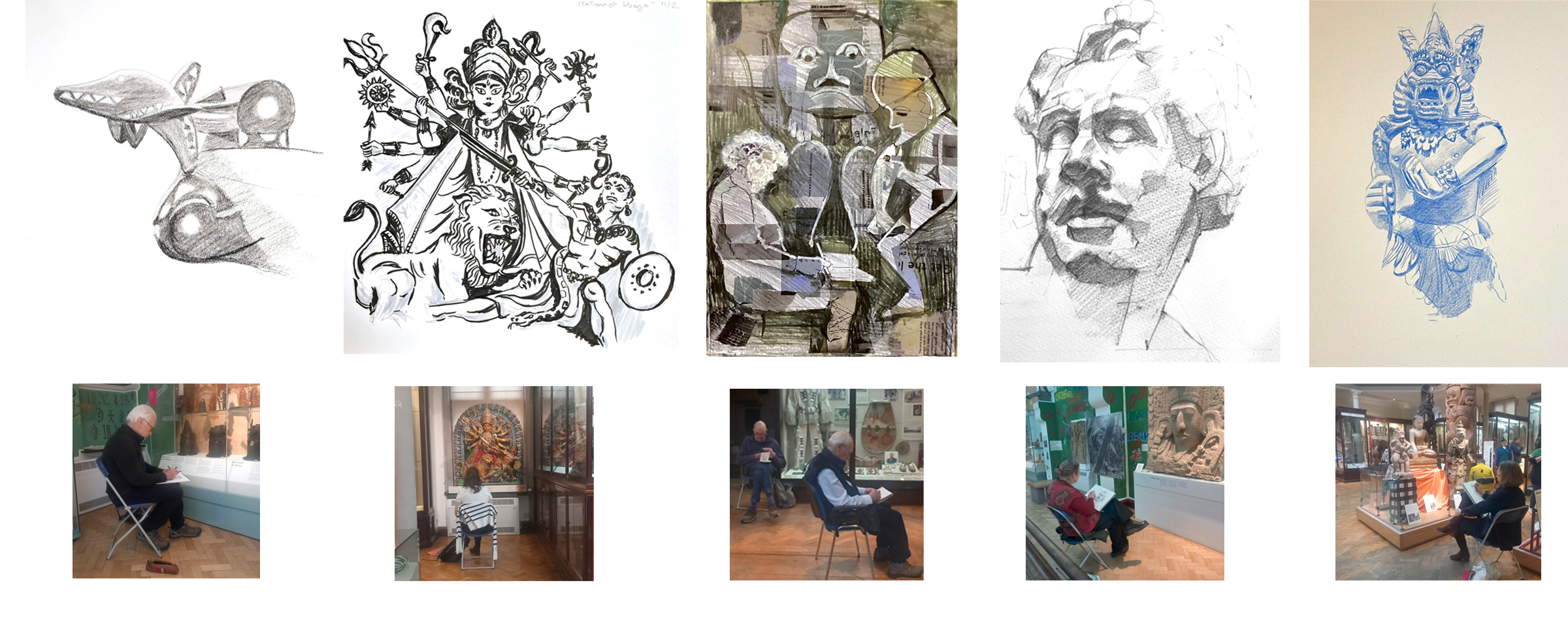 November’s Sketch Together took place at the fascinating Museum of Archaeology and Anthropology on Downing Street. The museum is full of wonderful objects from around the world and we were spoilt for choice as to what to draw; would it be the huge totem pole, objects dug up in Cambridge during building works or a Benin Bronze? Several of the group had not visited the museum before and were amazed by the exhibits and will go back there to draw another time.