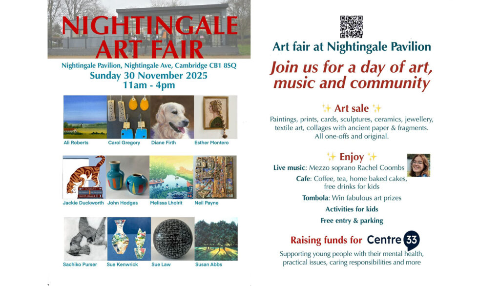 CDS members Susan Abbs, Jackie Duckworth, Diane Firth, Sue Law, Melissa Lhoirit & Sachiko Purser will be taking part in the Nightingale Art Fair on Sunday 30 November, 11am-4pm. As well as a great section of art for sale, there will also be live music, a cafe,…