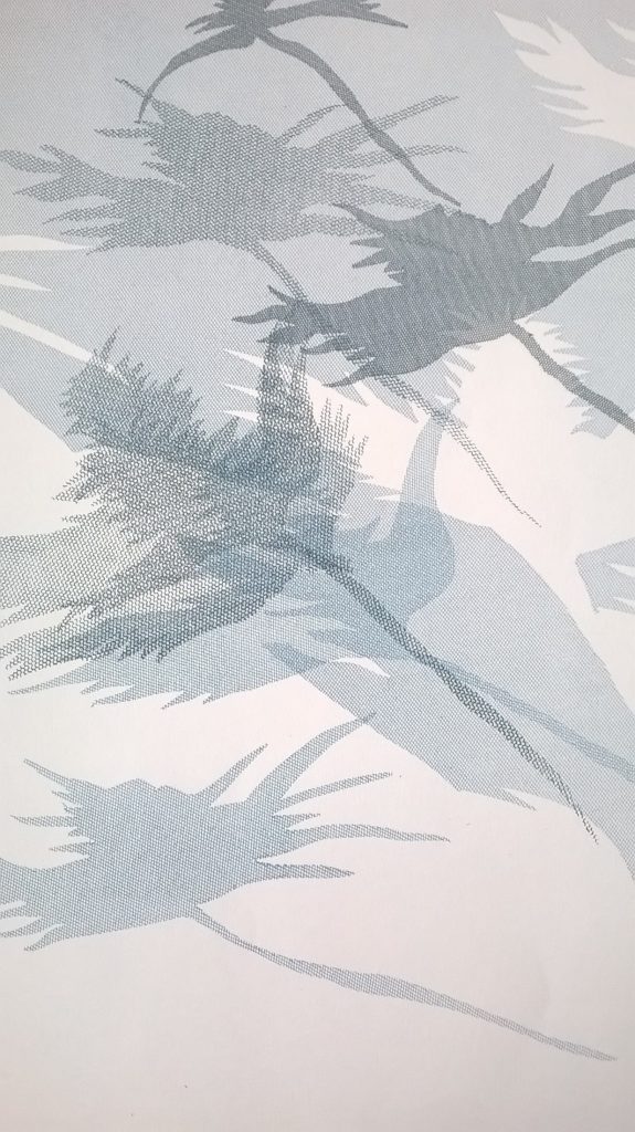 Using off-set Lithography, she developed a unique way of working to produce prints that were only just there on the paper – “kissing the surface with ink”.