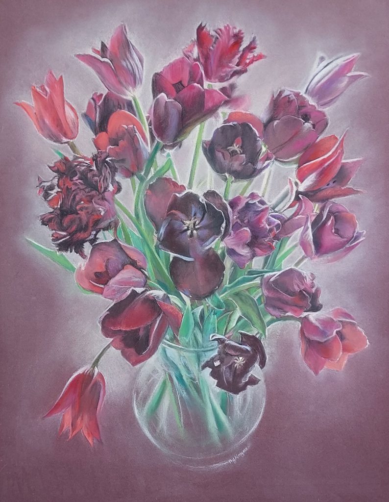 I work is mainly in pastel, which I love for its vibrancy, variety of colours and the tones that I can achieve in my detailed artwork.