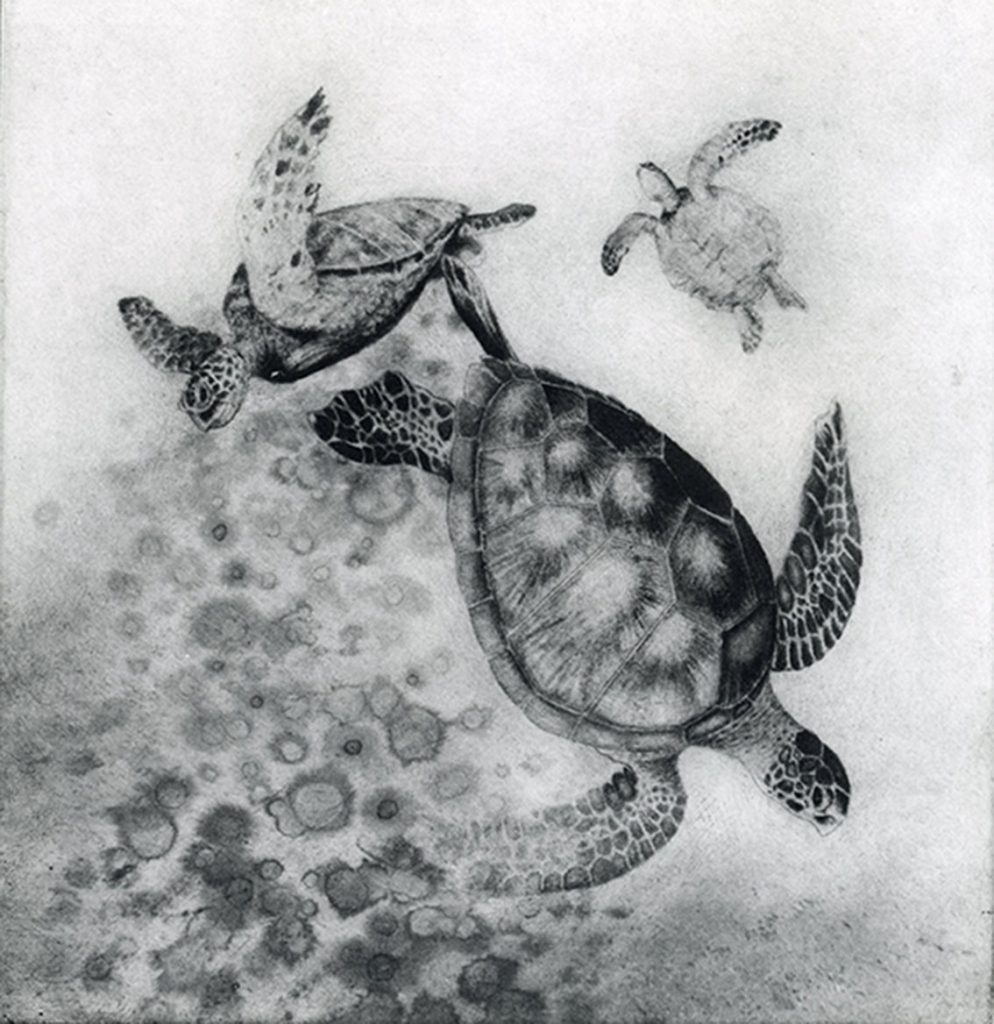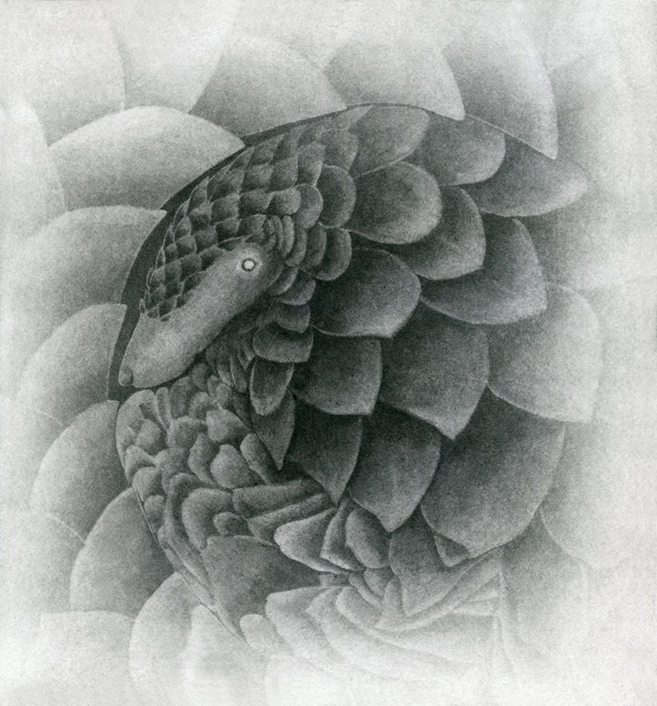 She is passionate about nature and the environment, especially the welfare of animals and birds. She combines traditional techniques such as Japanese woodblock and Sumi-ink painting with a contemporary perspective in printmaking and digital techniques to create mixed organic-technological hybrids.