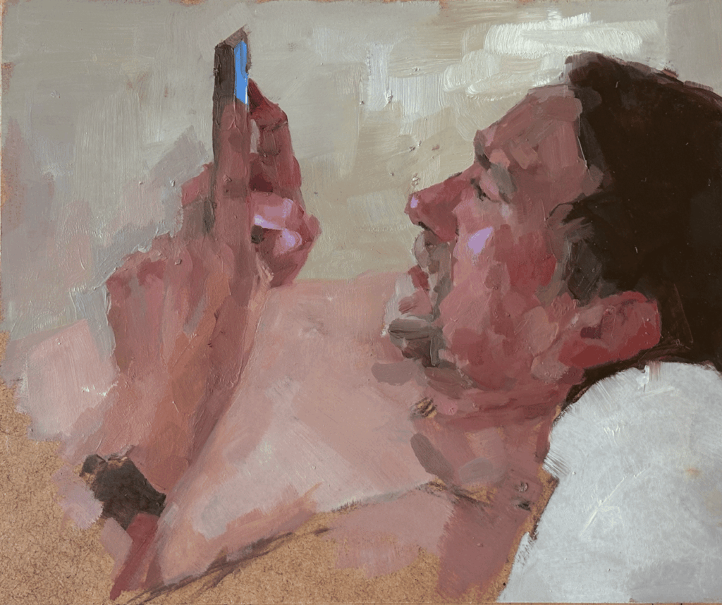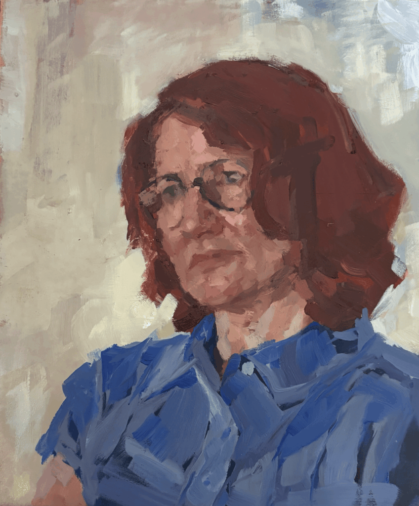 I begin each painting by sketching out shapes, establishing structure and proportion before thinking about paint and colour. From there the process becomes more intuitive, working into the paint directly and interpreting form, colour and edge in response to the entire image as it builds. What I’m most interested in is the tension between figuration and abstraction, and how far brush marks and colour can be pushed before the likeness starts to disappear. I want the work to hold both something true about the subject, and something worth looking at as a painting in itself.